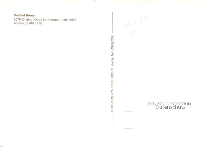 73596446 Kinding Gasthof Krone postalisch nicht gelaufen Erhaltung siehe scans [FriedD77] KatCode: 11110009176137