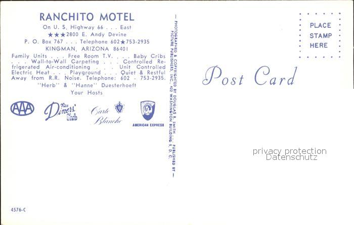 72167290 Kingman Arizona Ranchito Motel postalisch nicht gelaufen Erhaltung siehe scans KatCode: 14140030000000