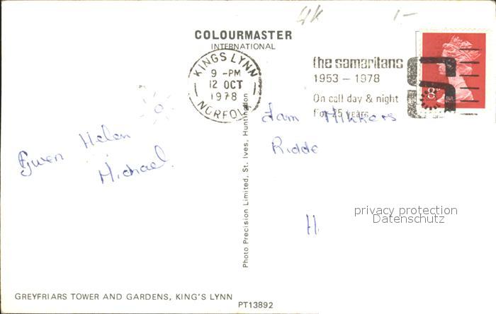 old postcard Kings Lynn & West Norfolk Greyfriars Tower postalisch gelaufen Erhaltung siehe scans