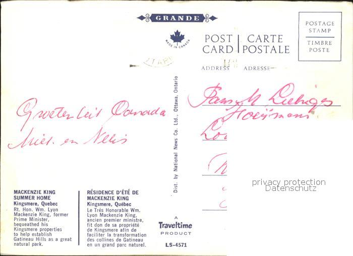 old postcard Kingsmere Chelsea Mackenzie King Summer Home Gatineau Hills Natural Park Automn postalisch gelaufen Erhaltung siehe scans