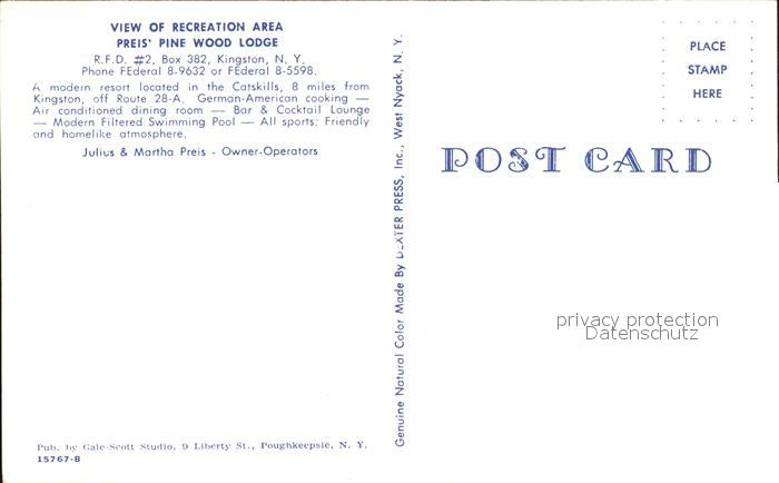 72444348 Kingston New York Recreation Area Preis Pine Wood Lodge postalisch nicht gelaufen Erhaltung siehe scans KatCode: 14140340000000