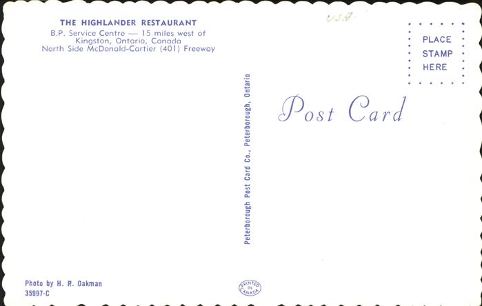 Kingston Ontario Highlander Restaurant Freeway postalisch nicht gelaufen Erhaltung siehe scans