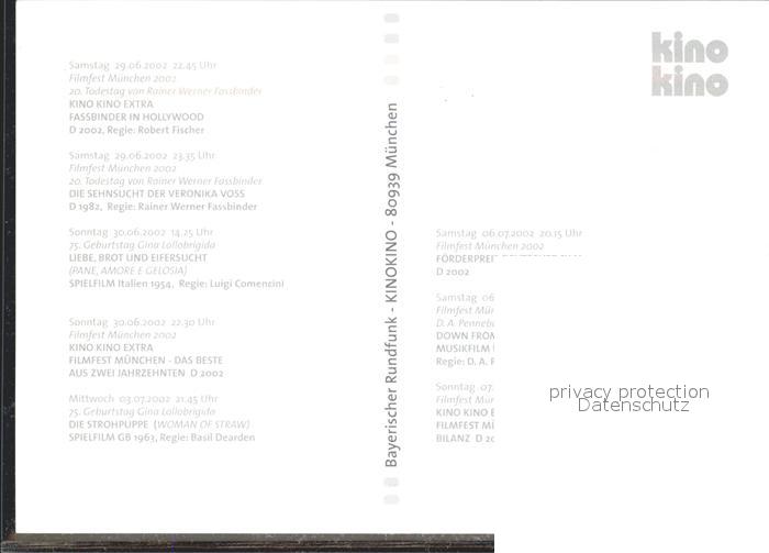 Kino Film Filmfest Bayrisches Fernsehen Gina Lollobrigida postalisch nicht gelaufen Erhaltung siehe scans