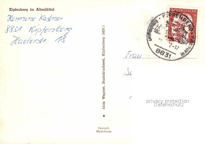 72845160 alte Postkarte Kipfenberg Altmuehltal postalisch gelaufen Erhaltung siehe scans [PaolaD17] KatCode: 11110009176138