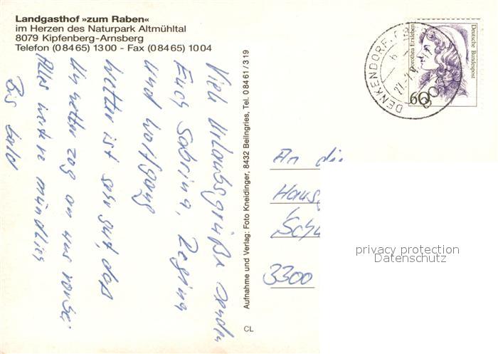 73172923 alte Postkarte Kipfenberg Altmuehltal Arnsberg Landgasthof zum Raben postalisch gelaufen Erhaltung siehe scans [LiesaD40] KatCode: 11110009176138