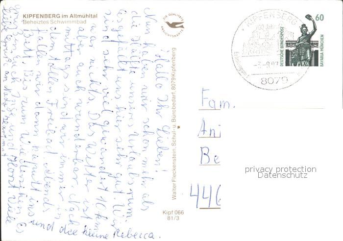 72244003 alte Postkarte Kipfenberg Altmuehltal Freibad postalisch gelaufen Erhaltung siehe scans KatCode: 11110009176138
