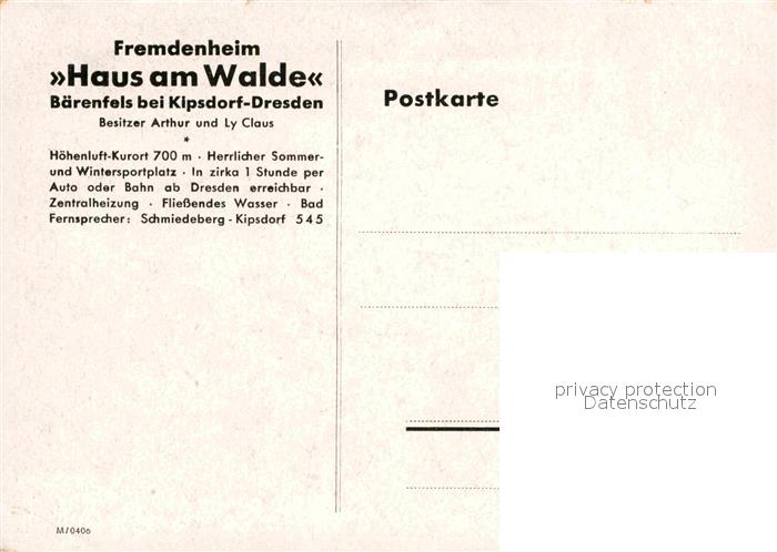 72784660 Kipsdorf Baerenfels Fremdenheim Haus am Wald postalisch nicht gelaufen Erhaltung siehe scans [LiesaD40] KatCode: 11110014290010