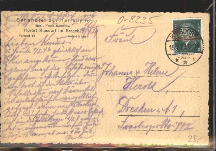 40909425 Kipsdorf Erzgebirge Bahnhotel zur Tellkoppe KatCode 11110014290010