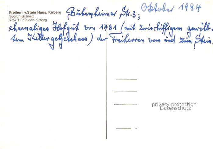 72740850 Kirberg Freiherr von Stein Haus postalisch nicht gelaufen Erhaltung siehe scans [LiesaD40] KatCode: 11110006533008