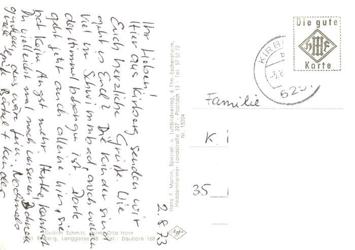 73878574 alte Postkarte Kirberg Teilansichten Ortszentrum Kirche Freibad postalisch gelaufen Erhaltung siehe scans [FriedD77] KatCode: 11110006533008