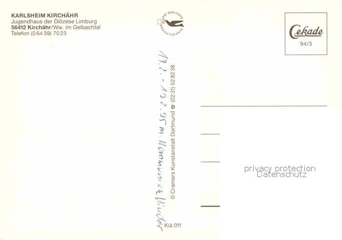 72842350 Kirchaehr Westerwald Karlsheim Kirchaehr Gelbachtal postalisch nicht gelaufen Erhaltung siehe scans [PaolaD17] KatCode: 11110007143020