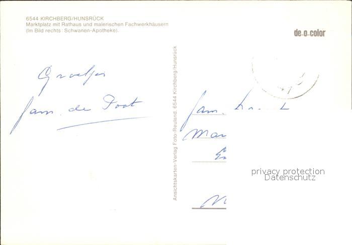 72429798 alte Postkarte Kirchberg Hunsrueck Marktplatz Rathaus Schwanen Apotheke postalisch gelaufen Erhaltung siehe scans KatCode: 11110007140067