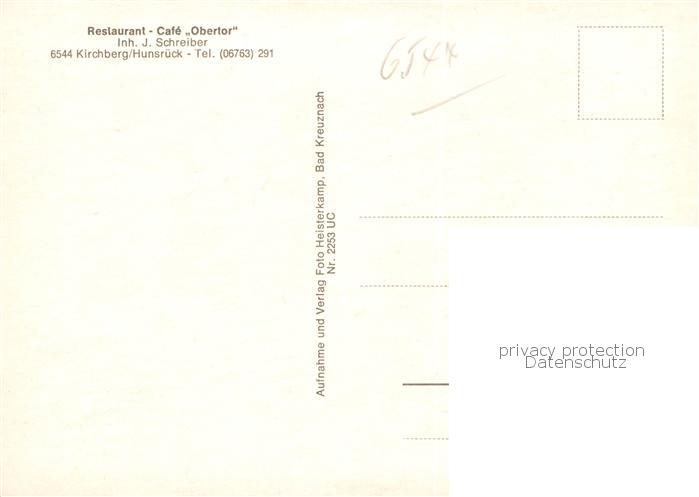 73793352 Kirchberg Hunsrueck Restaurant-Cafe Obertor postalisch nicht gelaufen Erhaltung siehe scans [LiesaD40] KatCode: 11110007140067