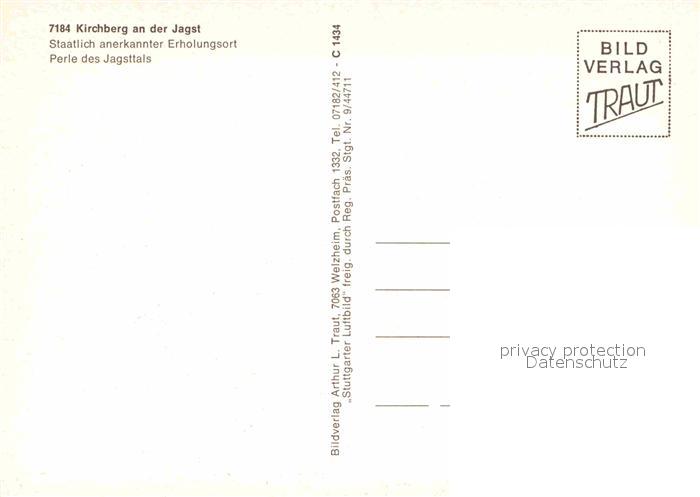 72844008 Kirchberg Jagst Fliegeraufnahme postalisch nicht gelaufen Erhaltung siehe scans [AndreD76] KatCode: 11110008127046