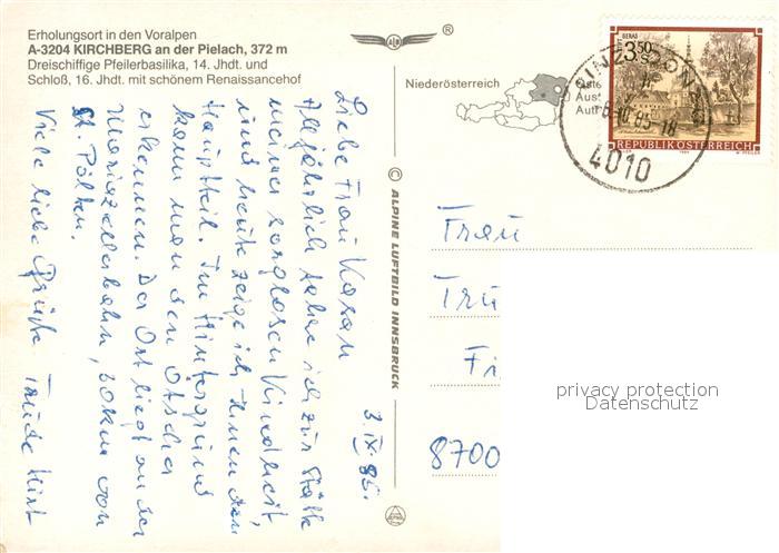 73224023 alte Postkarte Kirchberg Pielach Erholungsort Voralpen Fliegeraufnahme postalisch gelaufen Erhaltung siehe scans [FriedD77] KatCode: 11390123031918