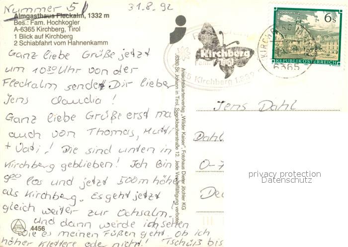 73070097 alte Postkarte Kirchberg Tirol Almgasthaus Fleckheim Hahnenkamm postalisch gelaufen Erhaltung siehe scans [KathaD81] KatCode: 11390335070409