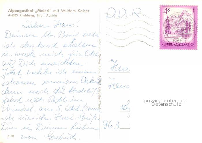 72832184 alte Postkarte Kirchberg Tirol Alpengasthof Meierl mit Wildem Kaiser postalisch gelaufen Erhaltung siehe scans [LiesaD40] KatCode: 11390335070409