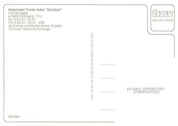 73028919 Kirchberg Tirol Alpenhotel Tiroler Adler Schloessl postalisch nicht gelaufen Erhaltung siehe scans [PaolaD17] KatCode: 11390335070409