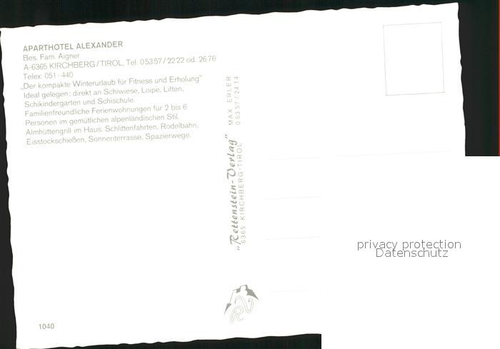 72254381 Kirchberg Tirol Aparthotel Alexander postalisch nicht gelaufen Erhaltung siehe scans KatCode: 11390335070409