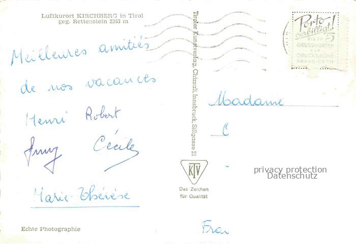 74012169 alte Postkarte Kirchberg Tirol AT Gesamtansicht Luftkurort Blick gegen Rettenstein postalisch gelaufen Erhaltung siehe scans [FriedD77] KatCode: 11390335070409