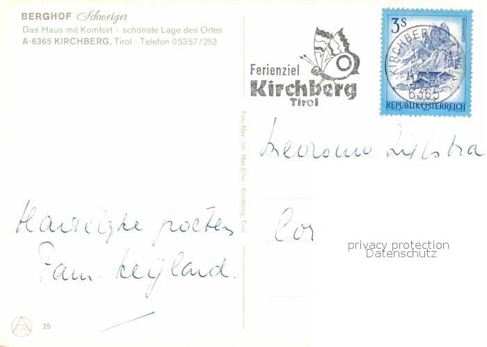 12871428 alte Postkarte Kirchberg Tirol Berghof Schweiger postalisch gelaufen Erhaltung siehe scans [PaolaD17] KatCode: 11390335070409