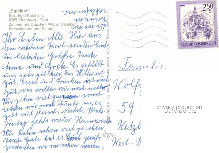 12637485 alte Postkarte Kirchberg Tirol Egidihof Pension postalisch gelaufen Erhaltung siehe scans [LiesaD40] KatCode: 11390335070409