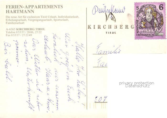 73725258 Kirchberg Tirol Ferien Appartements Hartmann postalisch nicht gelaufen Erhaltung siehe scans [WerneD78] KatCode: 11390335070409