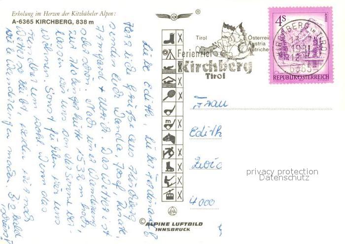 73049055 alte Postkarte Kirchberg Tirol Fliegeraufnahme postalisch gelaufen Erhaltung siehe scans [KathaD81] KatCode: 11390335070409