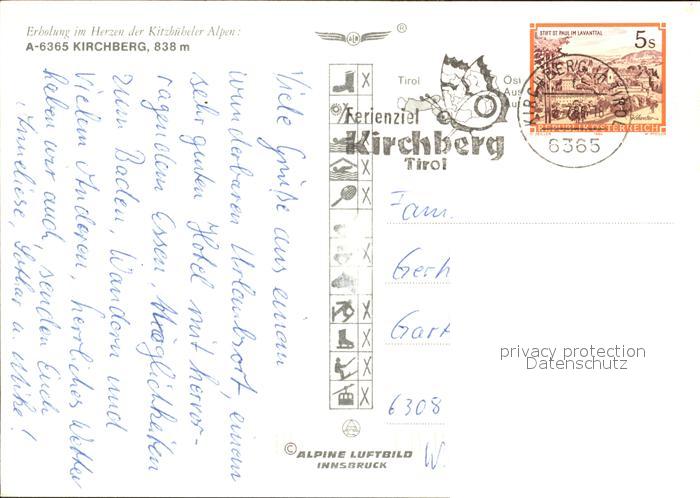 72464849 alte Postkarte Kirchberg Tirol Fliegeraufnahme Blumen postalisch gelaufen Erhaltung siehe scans KatCode: 11390335070409