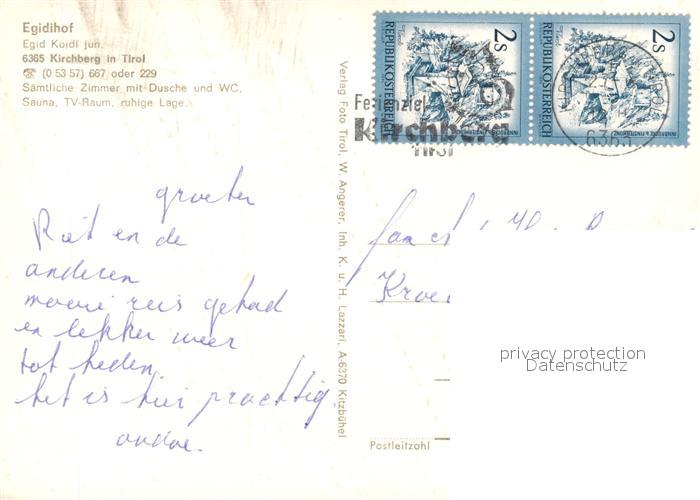 73363672 alte Postkarte Kirchberg Tirol Gaestehaus Pension Egidihof postalisch gelaufen Erhaltung siehe scans [FriedD77] KatCode: 11390335070409