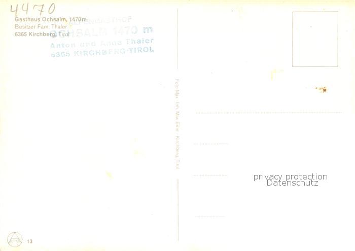 73209301 Kirchberg Tirol Gasthaus Ochsalm postalisch nicht gelaufen Erhaltung siehe scans [FriedD77] KatCode: 11390335070409