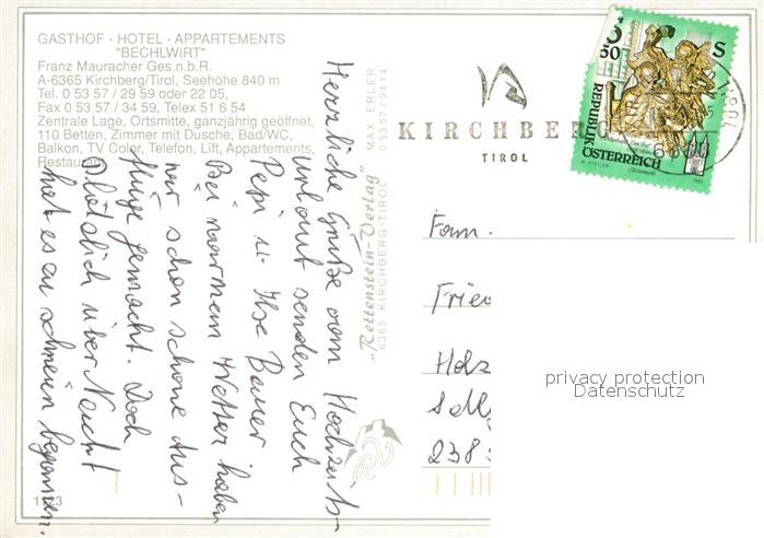 12936227 alte Postkarte Kirchberg Tirol Gasthof Hotel Bechelwirt postalisch gelaufen Erhaltung siehe scans [AndreD76] KatCode: 11390335070409