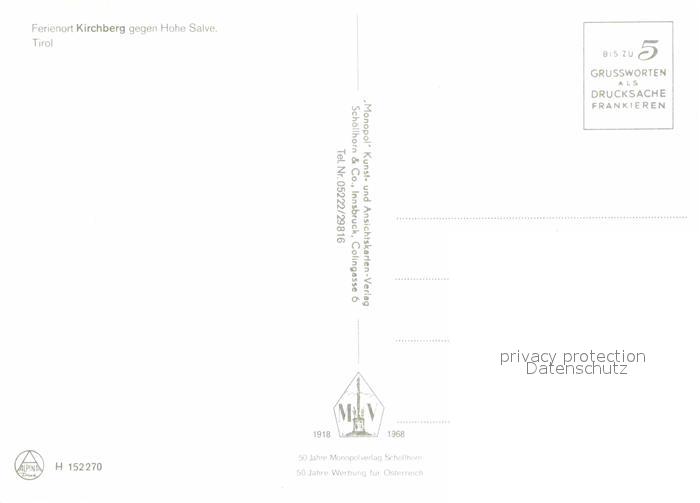 72839955 Kirchberg Tirol gegen Hohe Salve postalisch nicht gelaufen Erhaltung siehe scans [LiesaD40] KatCode: 11390335070409