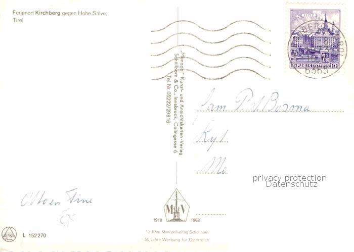 72887235 alte Postkarte Kirchberg Tirol gegen Hohe Salve postalisch gelaufen Erhaltung siehe scans [LiesaD40] KatCode: 11390335070409