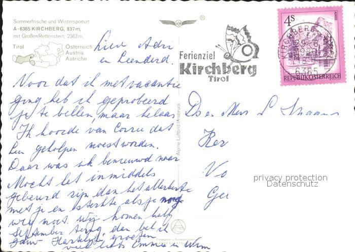 72493446 alte Postkarte Kirchberg Tirol Grosser Rettenstein Alpenpanorama Fliegeraufnahme postalisch gelaufen Erhaltung siehe scans KatCode: 11390335070409