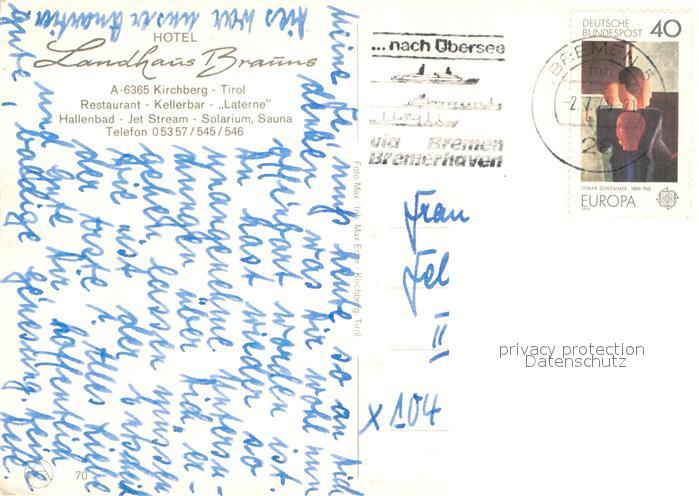 13008712 alte Postkarte Kirchberg Tirol Hotel Landhaus Brauns postalisch gelaufen Erhaltung siehe scans [NatalD47] KatCode: 11390335070409