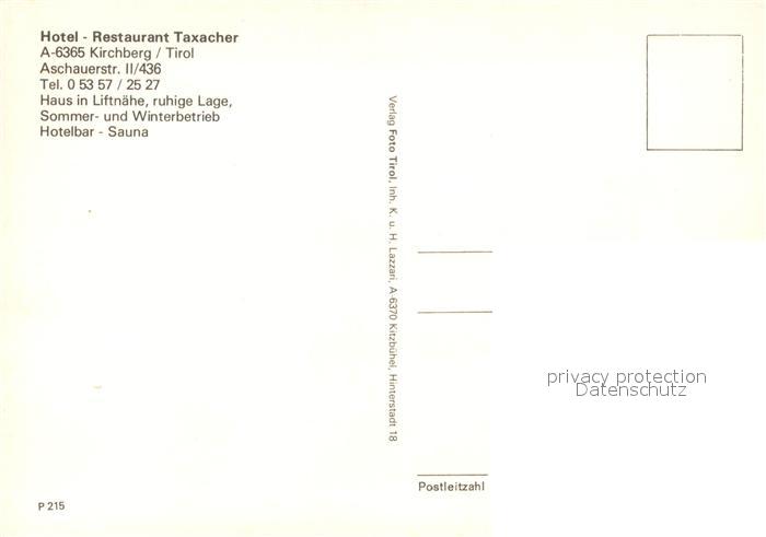 73590869 Kirchberg Tirol Hotel Restaurant Taxacher postalisch nicht gelaufen Erhaltung siehe scans [KathaD81] KatCode: 11390335070409