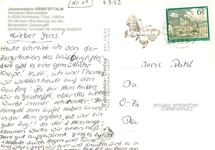 73102383 alte Postkarte Kirchberg Tirol Jausenstation Baerstaettalm postalisch gelaufen Erhaltung siehe scans [PaolaD17] KatCode: 11390335070409