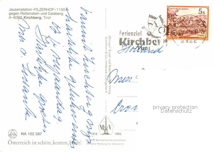 72711720 alte Postkarte Kirchberg Tirol Jausenstation Filzerhof Panorama Blick gegen Rettenstein und Gaisberg postalisch gelaufen Erhaltung siehe scans [FriedD77] KatCode: 11390335070409