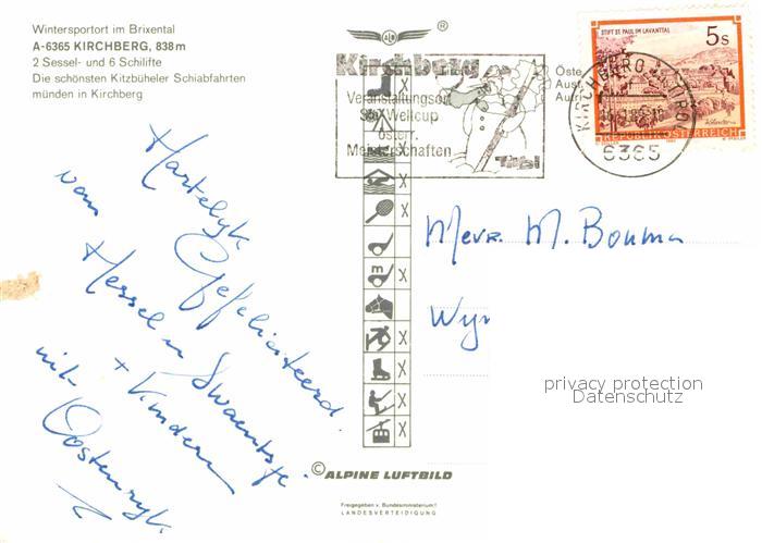 72823303 alte Postkarte Kirchberg Tirol Kitzbueheler Horn Alpenpanorama im Winter Drachenfliegen Fliegeraufnahme postalisch gelaufen Erhaltung siehe scans [FriedD77] KatCode: 11390335070409