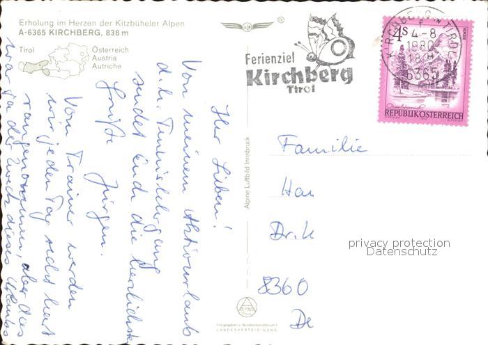 12592842 alte Postkarte Kirchberg Tirol Kitzbueheler Horn Fliegeraufnahme postalisch gelaufen Erhaltung siehe scans [NatalD47] KatCode: 11390335070409