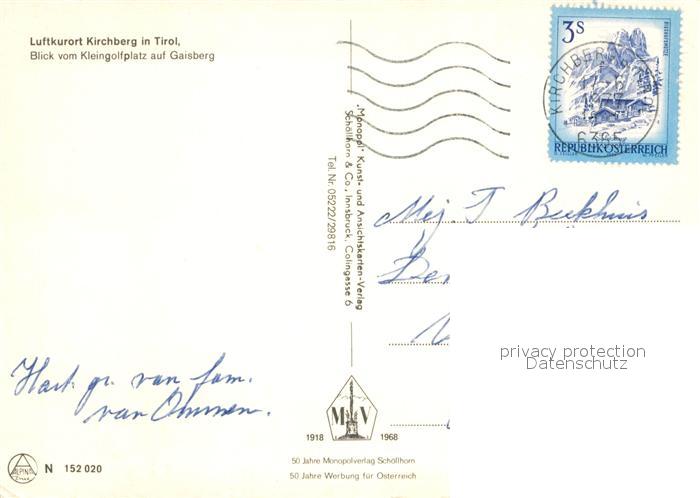 73016484 alte Postkarte Kirchberg Tirol Kleingolfplatz Gaisberg postalisch gelaufen Erhaltung siehe scans [NatalD47] KatCode: 11390335070409