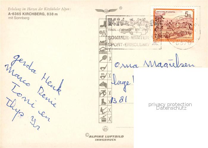 73219758 alte Postkarte Kirchberg Tirol mit Sonnberg Kaisergebirge Fliegeraufnahme postalisch gelaufen Erhaltung siehe scans [FriedD77] KatCode: 11390335070409