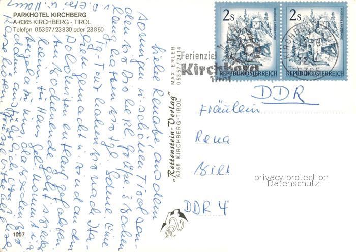 73080475 alte Postkarte Kirchberg Tirol Parkhotel Kirchberg postalisch gelaufen Erhaltung siehe scans [FriedD77] KatCode: 11390335070409