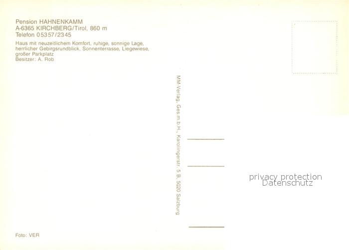 73073715 Kirchberg Tirol Pension Hahnenkamm postalisch nicht gelaufen Erhaltung siehe scans [FriedD77] KatCode: 11390335070409