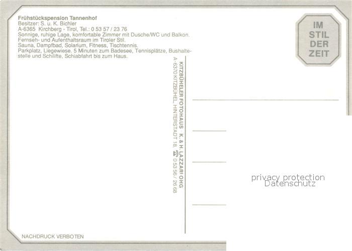 73588599 Kirchberg Tirol Pension Tannenhof postalisch nicht gelaufen Erhaltung siehe scans [PaolaD17] KatCode: 11390335070409