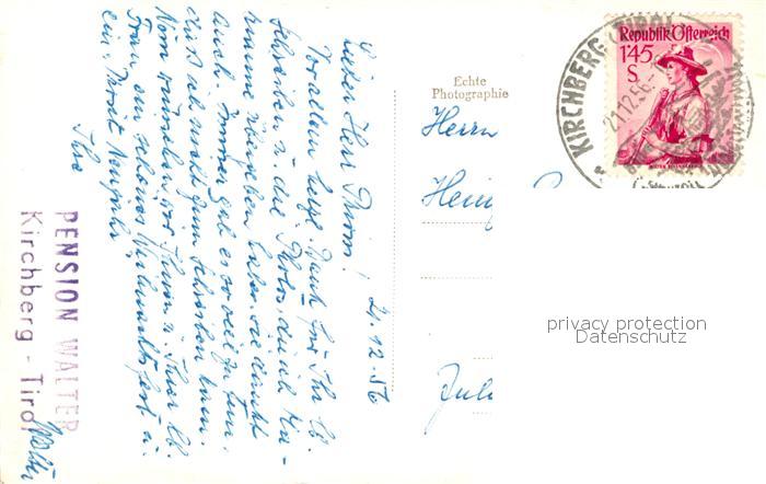 13191532 alte Postkarte Kirchberg Tirol Pension Walter postalisch gelaufen Erhaltung siehe scans [PaolaD17] KatCode: 11390335070409