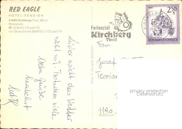 72232514 alte Postkarte Kirchberg Tirol Red Eagle Hotel postalisch gelaufen Erhaltung siehe scans KatCode: 11390335070409