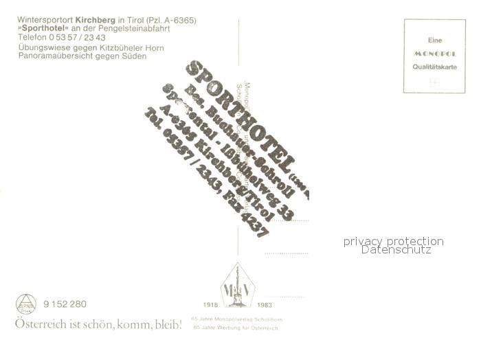 73642989 Kirchberg Tirol Sporthotel an Pengelsteinabfahrt Wintersportplatz Alpen postalisch nicht gelaufen Erhaltung siehe scans [FriedD77] KatCode: 11390335070409