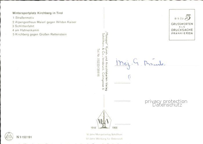 71974600 Kirchberg Tirol Strassenansicht Alengasthof Maierl Wilden Kaiser Schlittenfahrt Hahnenkamm postalisch nicht gelaufen Erhaltung siehe scans KatCode: 11390335070409